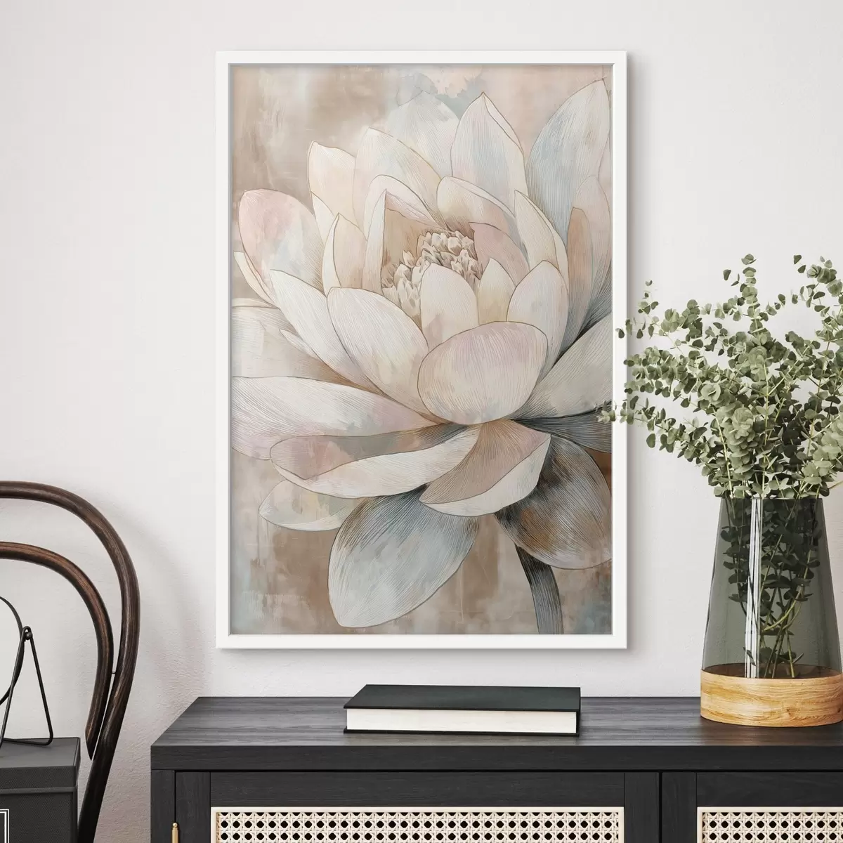 Poster Grote lotus in pasteltinten in minimalistische stijl N° f47973