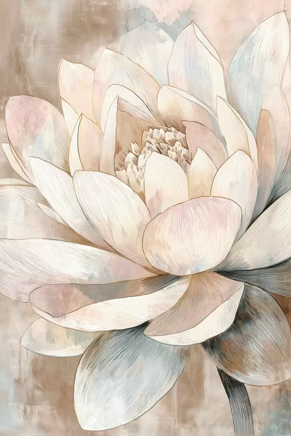 Poster Grote lotus in pasteltinten in minimalistische stijl N° f47973