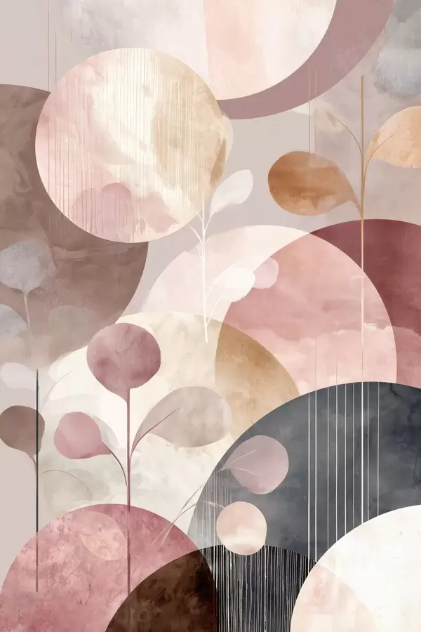 Poster Samenstelling van doorschijnende cirkels en gestileerde takken N° f47978