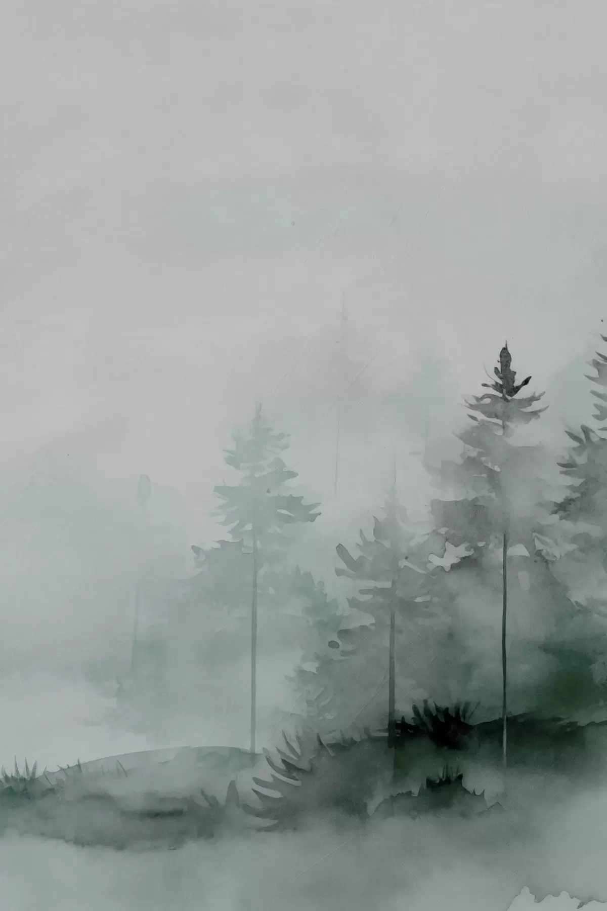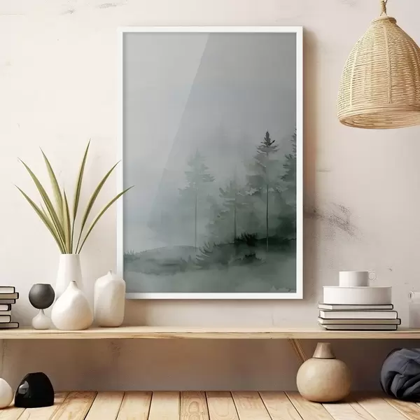 Poster Dennenbomen in het bos, imitatie aquarel f47998