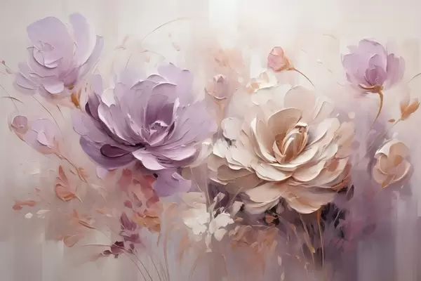 Poster Delicate grote bloemen, imitatie van een olieverfschilderij N° f48002