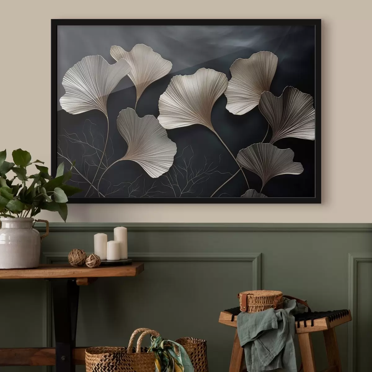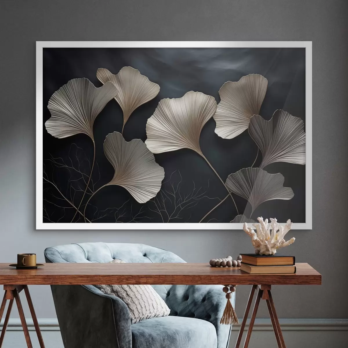 Poster Ginkgobladeren op een donkere achtergrond f48008