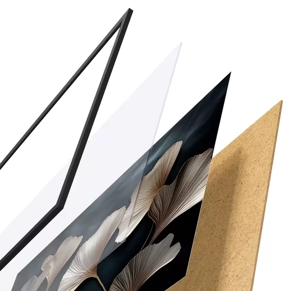 De poster bestaat uit een frame, plexiglas, geprinte afbeelding en spaanplaat achterkant. De poster kan meteen aan de muur worden gehangen dankzij de bevestigingen op de achterkant.