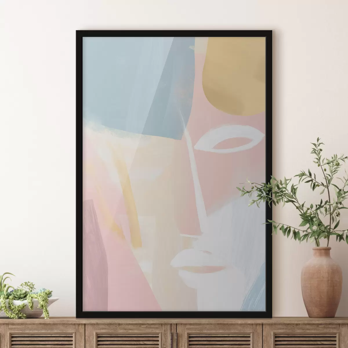 De poster bestaat uit een frame, plexiglas, geprinte afbeelding en spaanplaat achterkant. De poster kan meteen aan de muur worden gehangen dankzij de bevestigingen op de achterkant.