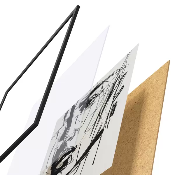 De poster bestaat uit een frame, plexiglas, geprinte afbeelding en spaanplaat achterkant. De poster kan meteen aan de muur worden gehangen dankzij de bevestigingen op de achterkant.