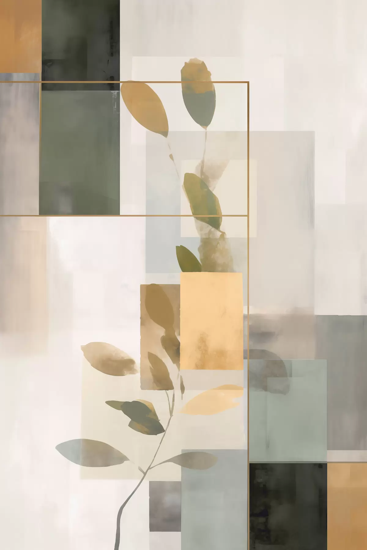 Poster Geometrische abstractie met takken en bladeren N° f48020