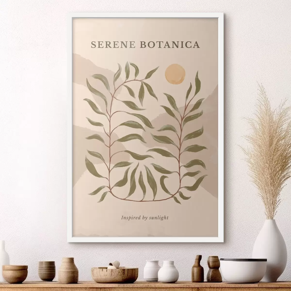 Poster Botanische poster met tekst 'Serene Botanica' f48022