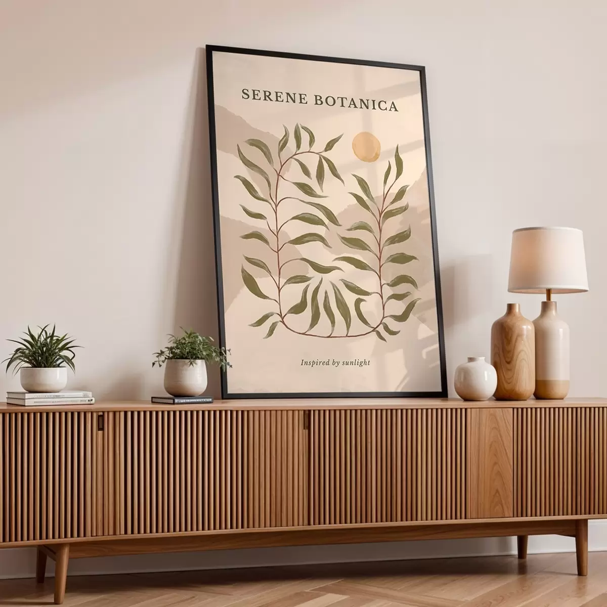 Poster Botanische poster met tekst 'Serene Botanica' N° f48022