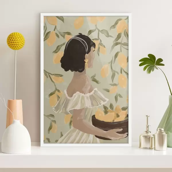 Poster Vrouw met een schaal citroenen bij de takken N° f48023