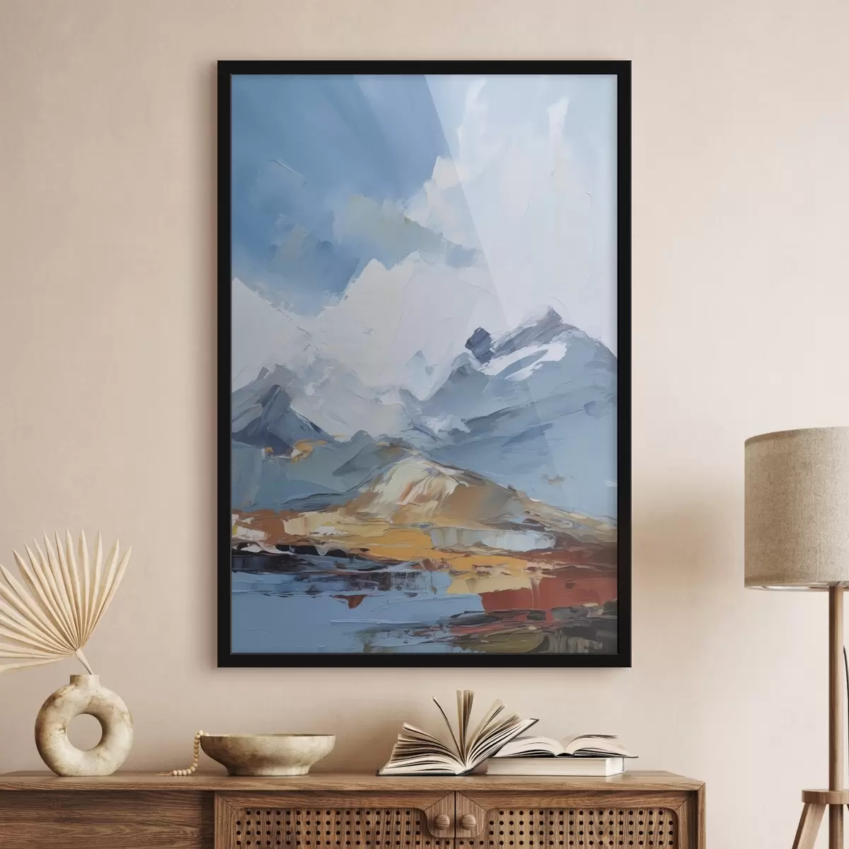 Je kunt het schilderij ophangen aan schroeven. Hiervoor leveren we bevestigingen bij onze foto's, zodat je de foto gemakkelijk kunt ophangen.