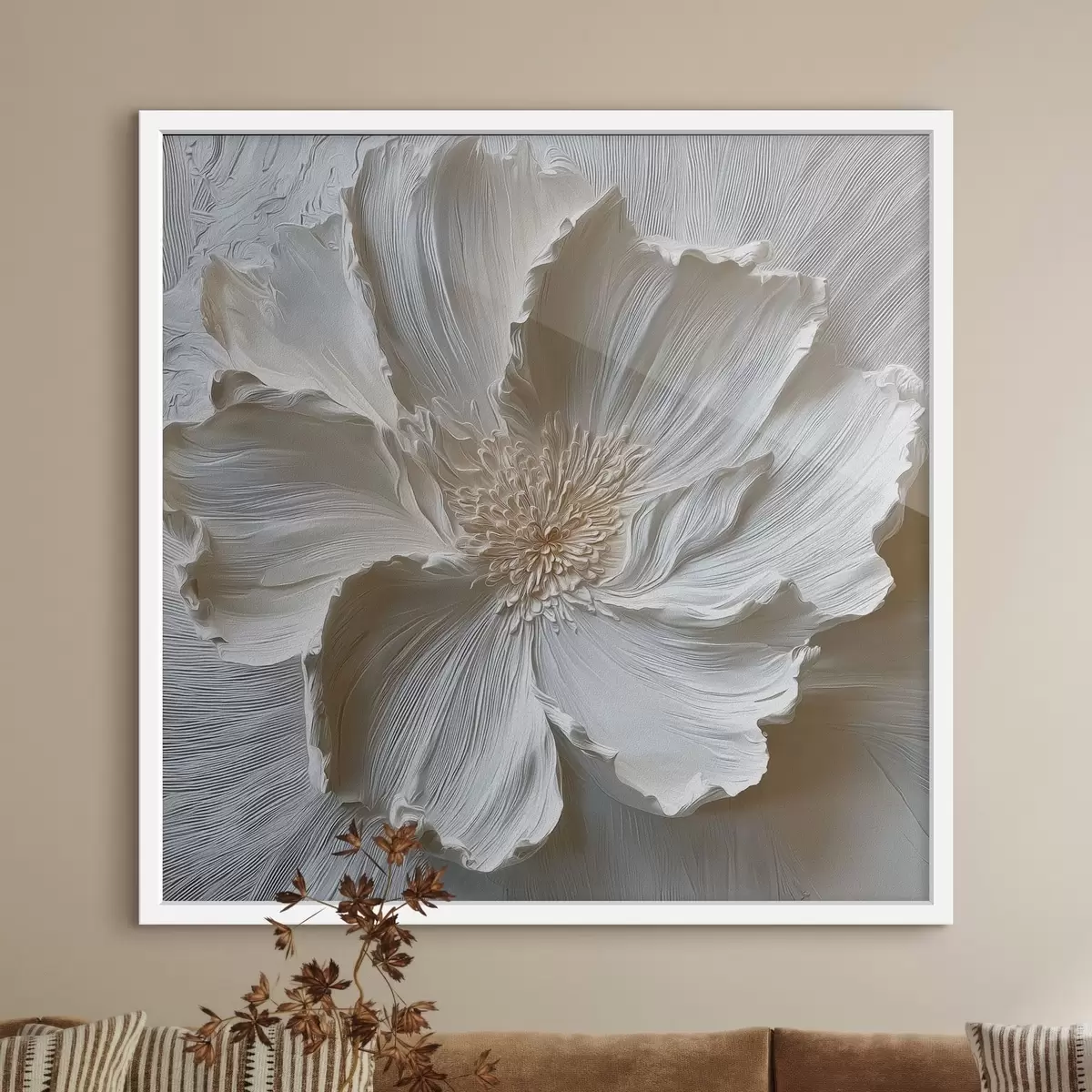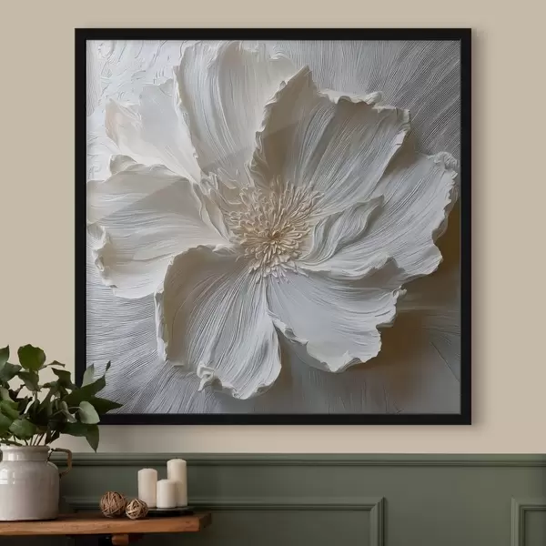 Poster witte gipsen reliëf bloemensculptuur N° f48064