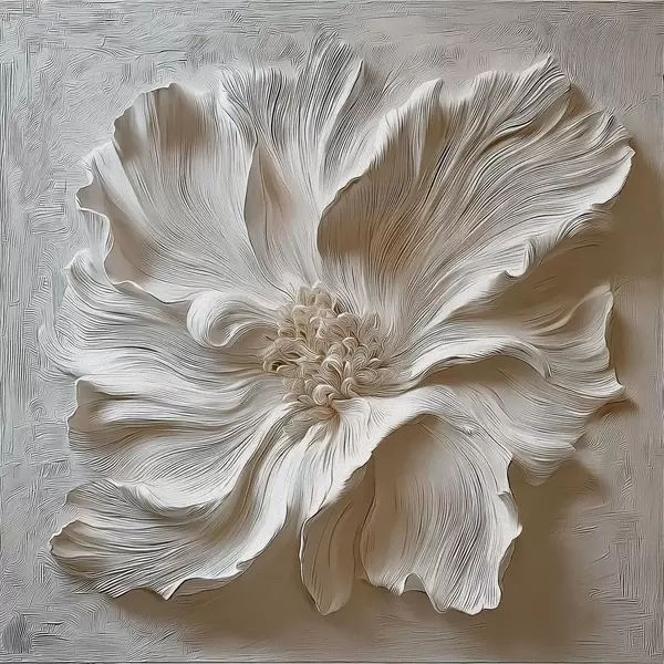 Poster witte gipsen reliëf bloemensculptuur N° f48065