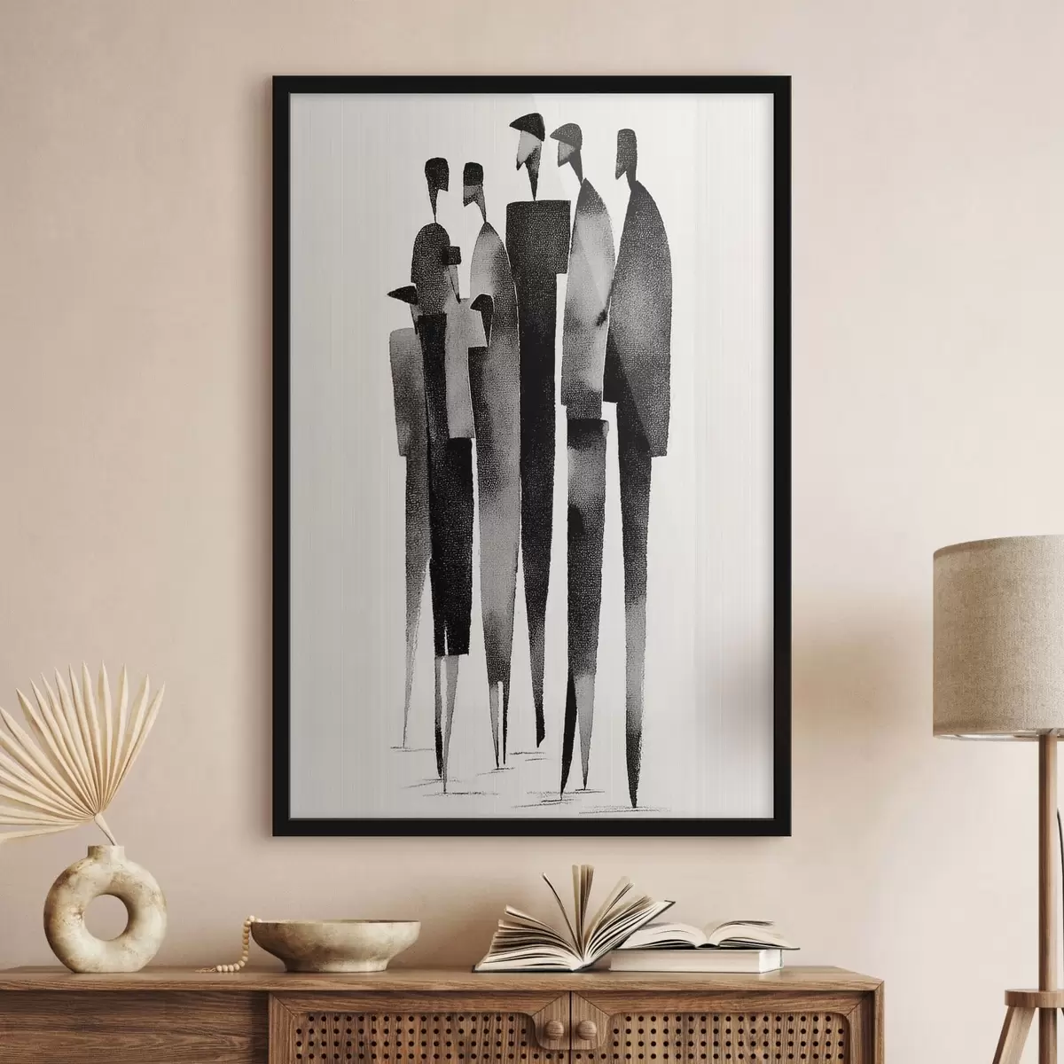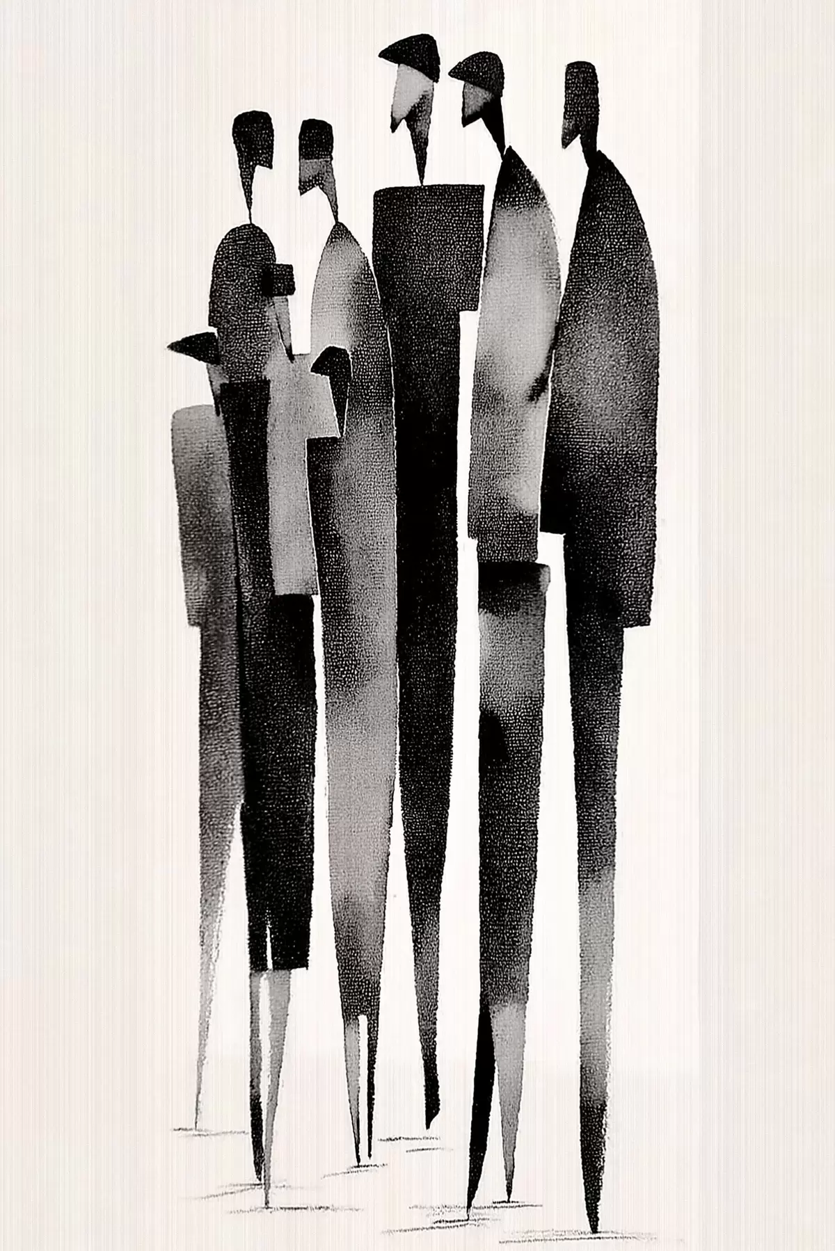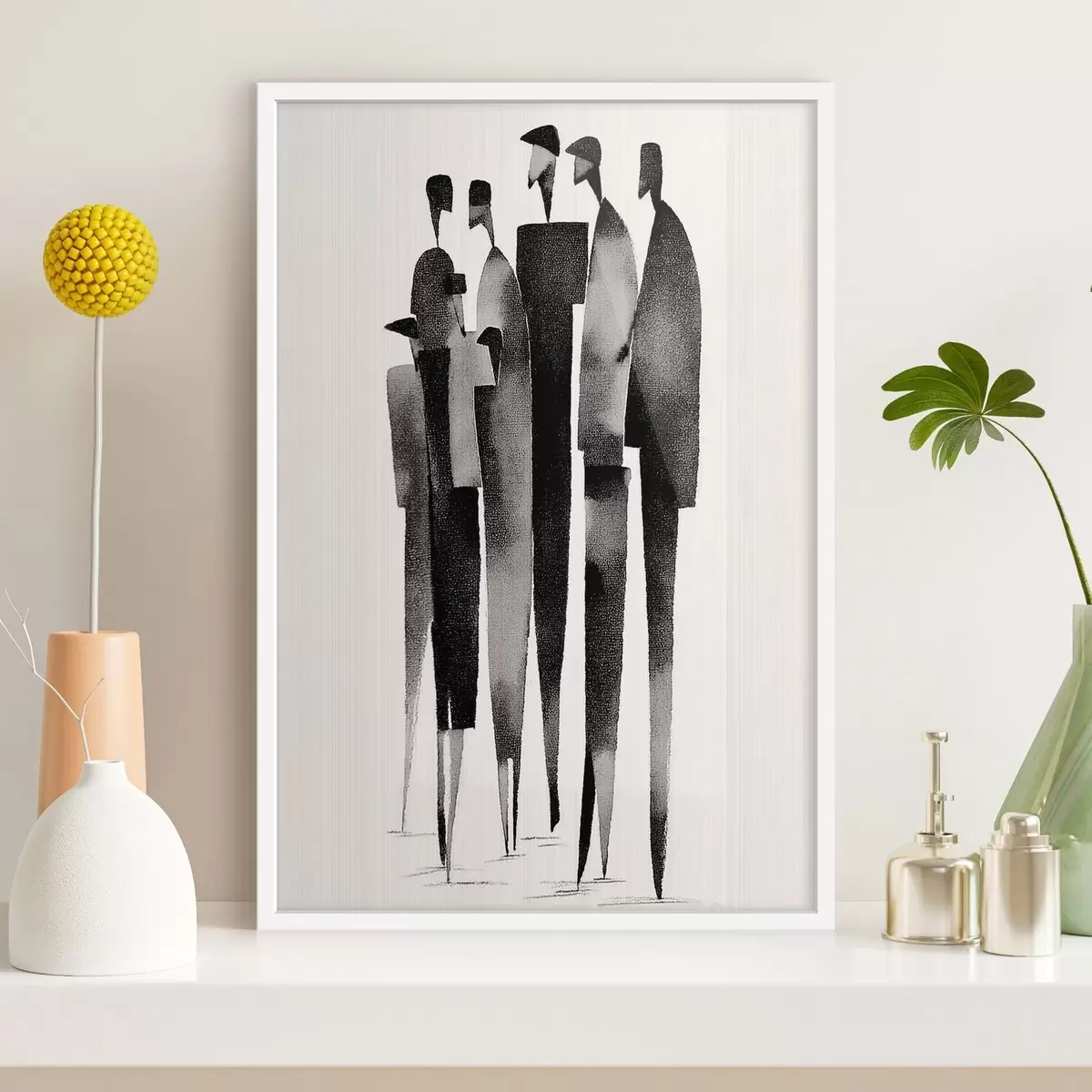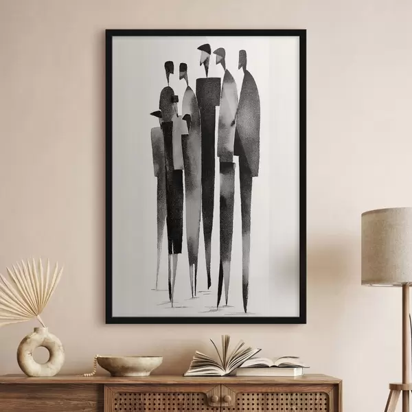 Poster minimalistische langgerekte menselijke figuren die in een rij staan N° f48068