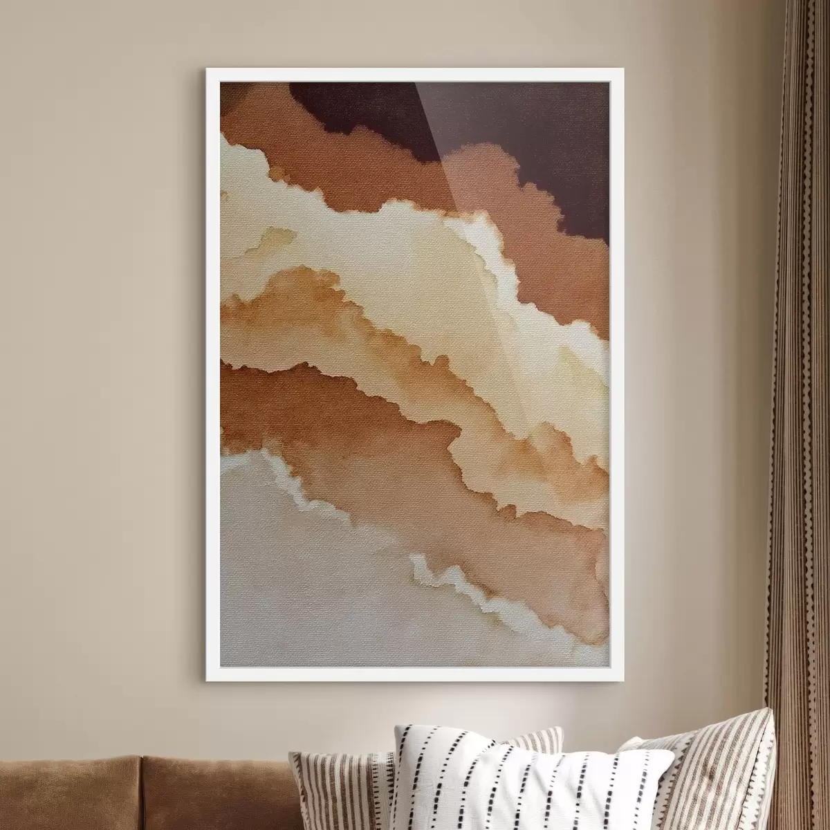 Je kunt het schilderij ophangen aan schroeven. Hiervoor leveren we bevestigingen bij onze foto's, zodat je de foto gemakkelijk kunt ophangen.