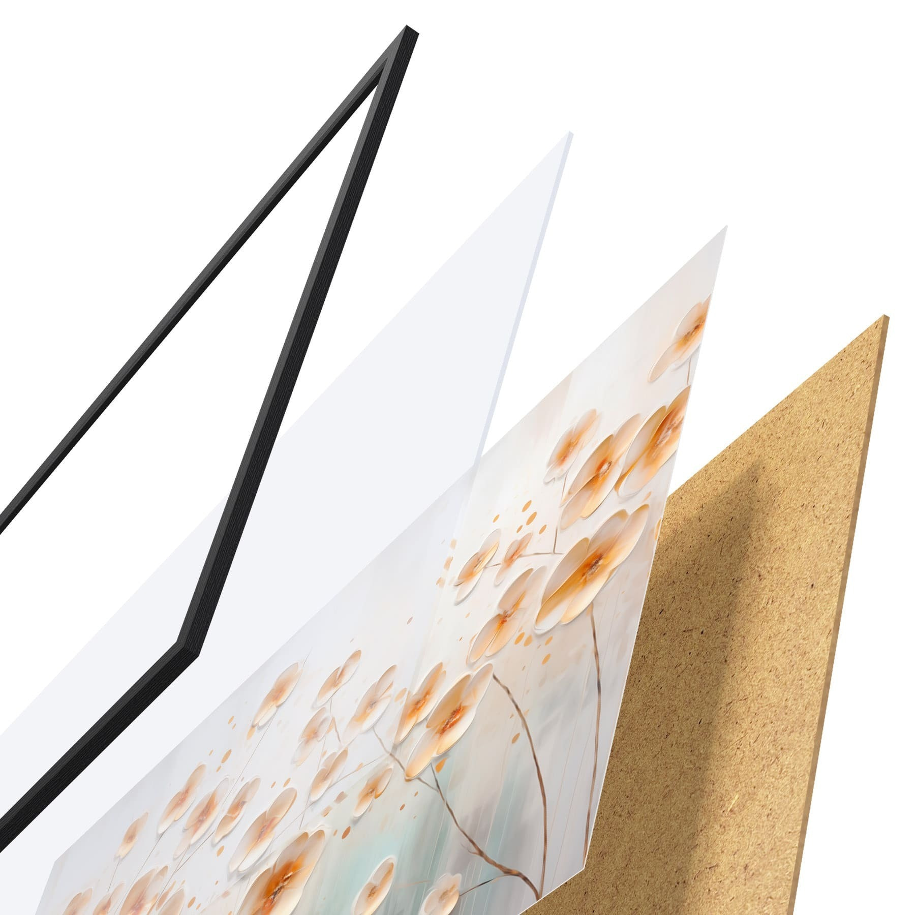 De poster bestaat uit een frame, plexiglas, geprinte afbeelding en spaanplaat achterkant. De poster kan meteen aan de muur worden gehangen dankzij de bevestigingen op de achterkant.