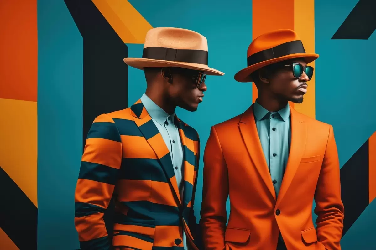 Poster Twee mannen in opvallende pakken en hoeden N° f48091