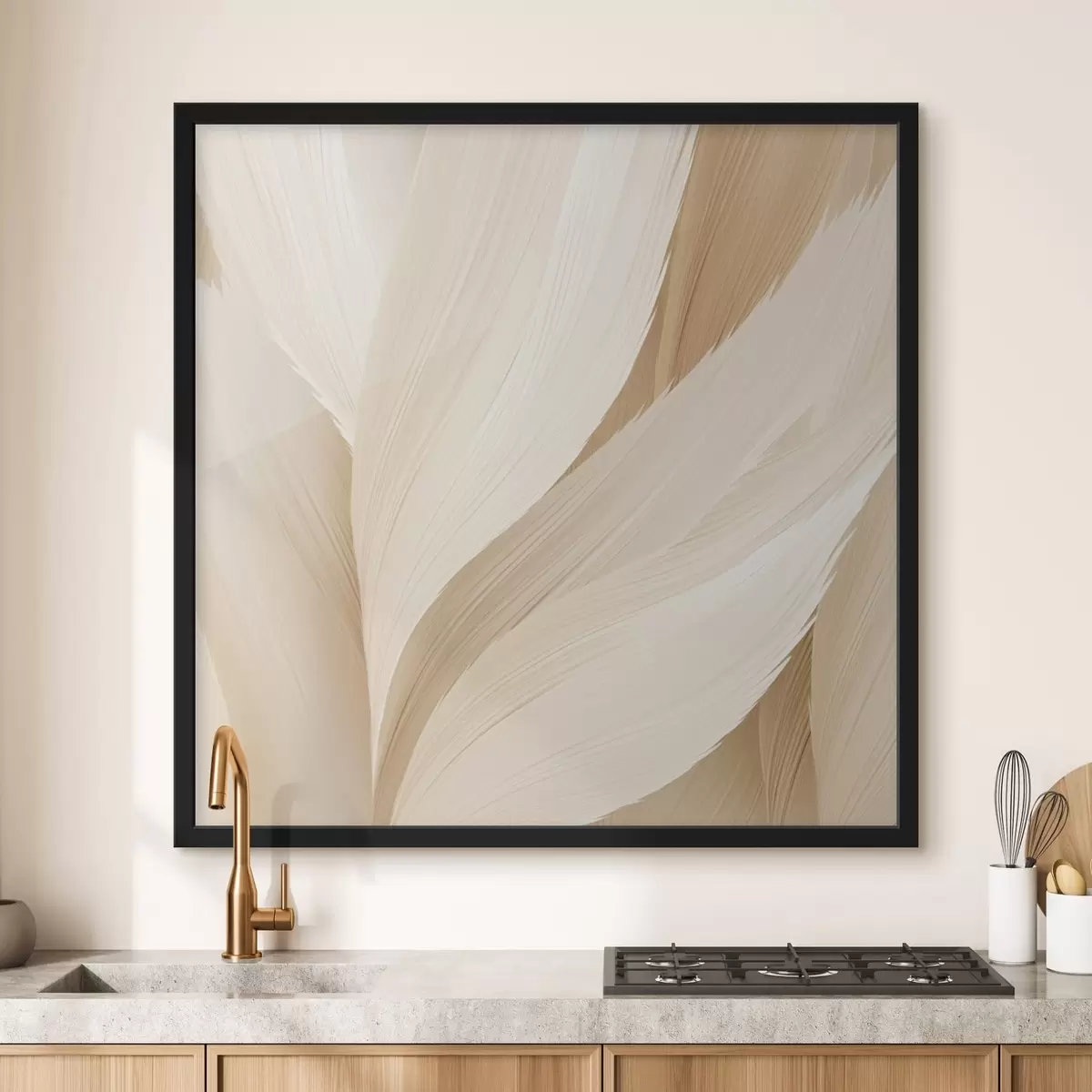 Poster Lichte, veerachtige vormen in beigetinten N° f48096