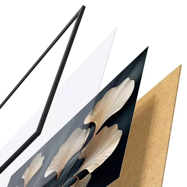 De poster bestaat uit een frame, plexiglas, geprinte afbeelding en spaanplaat achterkant. De poster kan meteen aan de muur worden gehangen dankzij de bevestigingen op de achterkant.