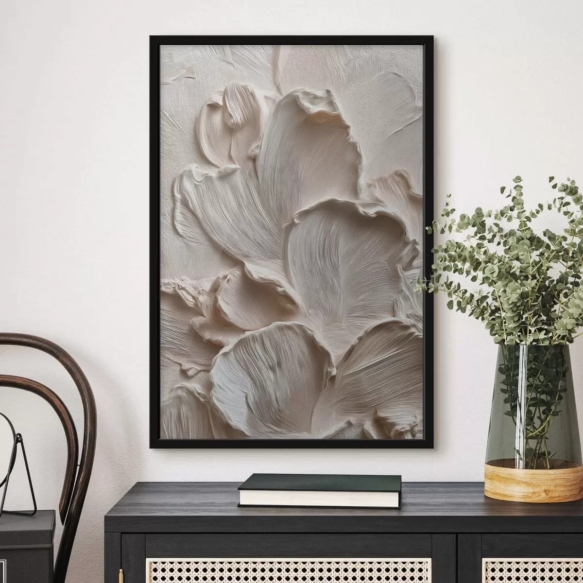 Je kunt het schilderij ophangen aan schroeven. Hiervoor leveren we bevestigingen bij onze foto's, zodat je de foto gemakkelijk kunt ophangen.