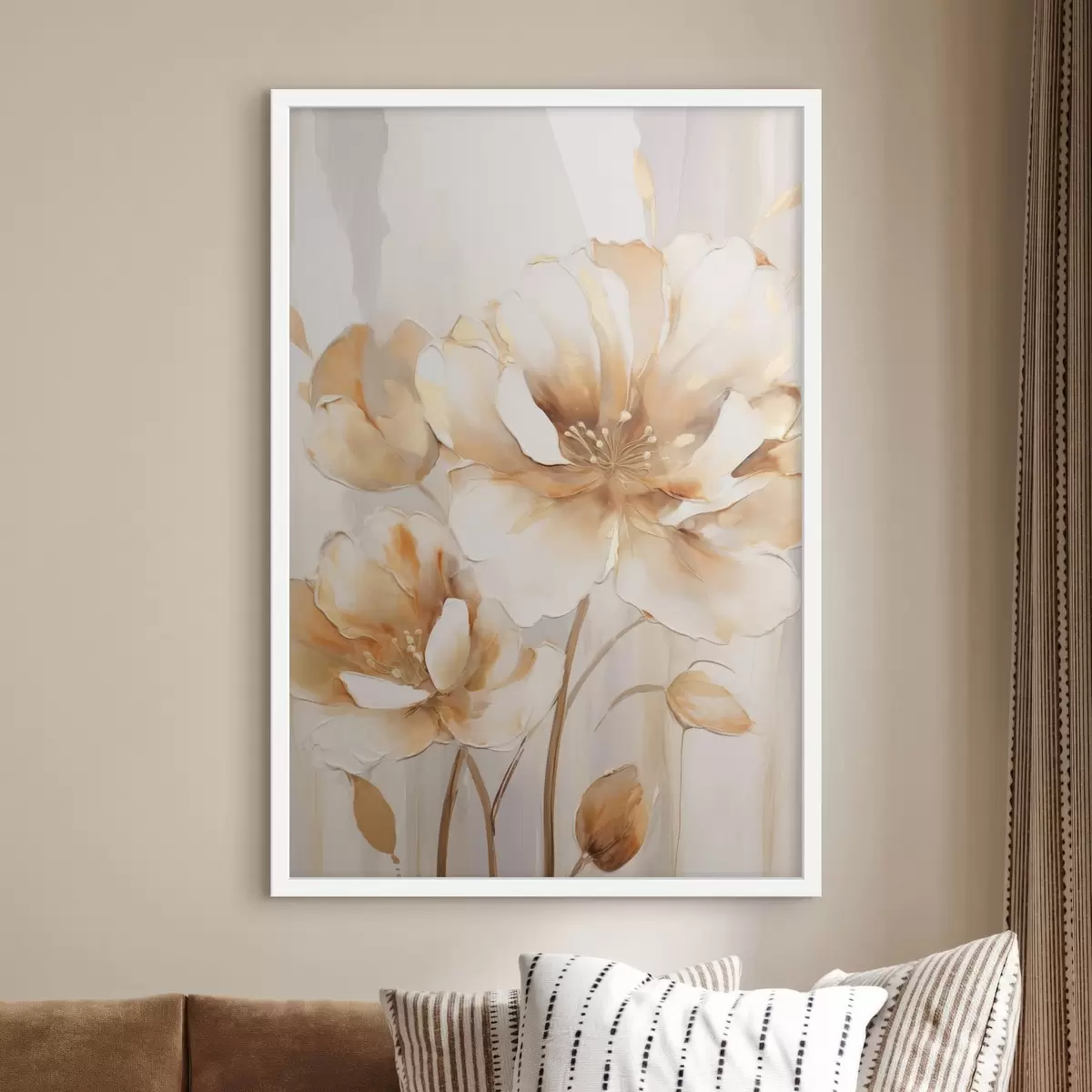 Je kunt het schilderij ophangen aan schroeven. Hiervoor leveren we bevestigingen bij onze foto's, zodat je de foto gemakkelijk kunt ophangen.