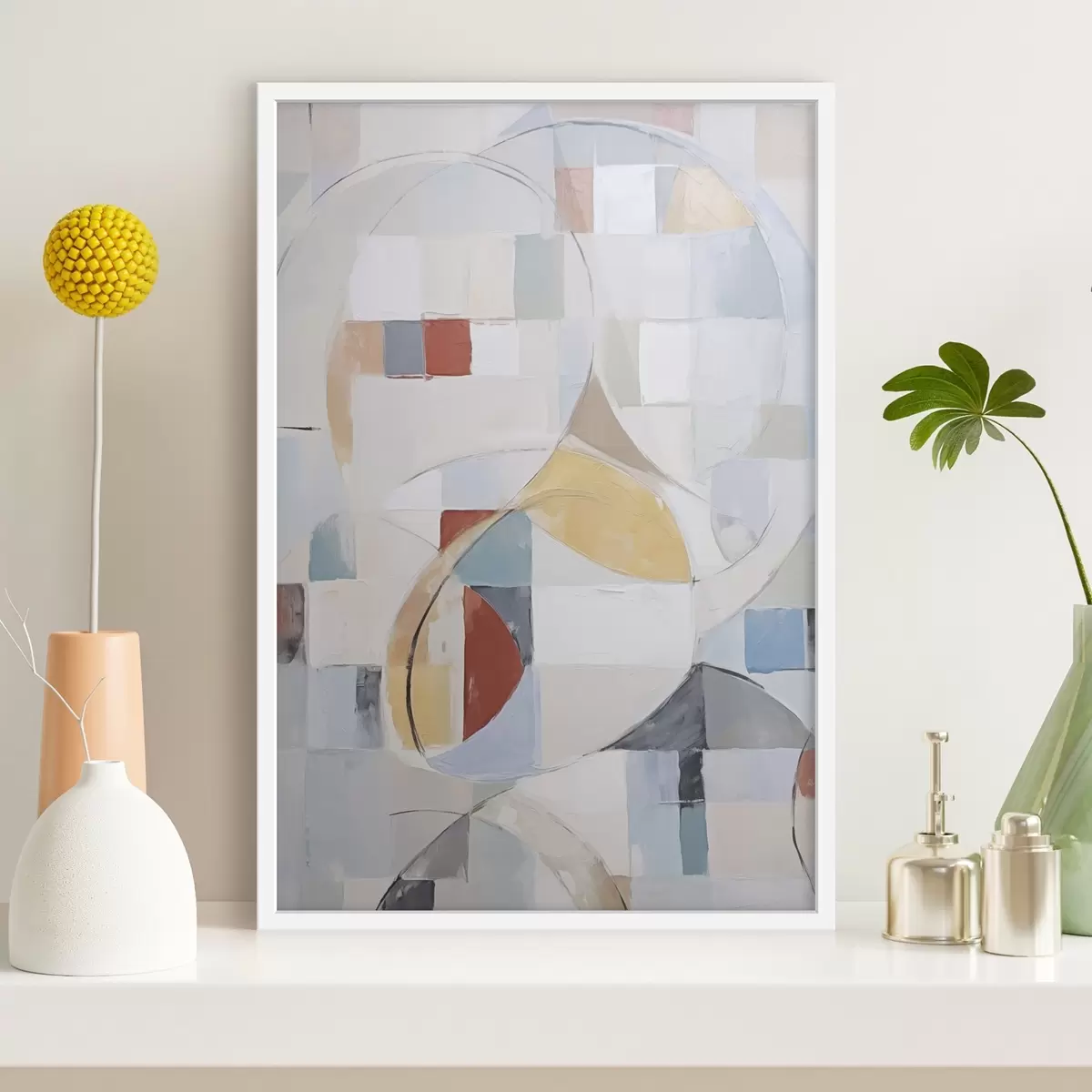 De poster bestaat uit een frame, plexiglas, geprinte afbeelding en spaanplaat achterkant. De poster kan meteen aan de muur worden gehangen dankzij de bevestigingen op de achterkant.