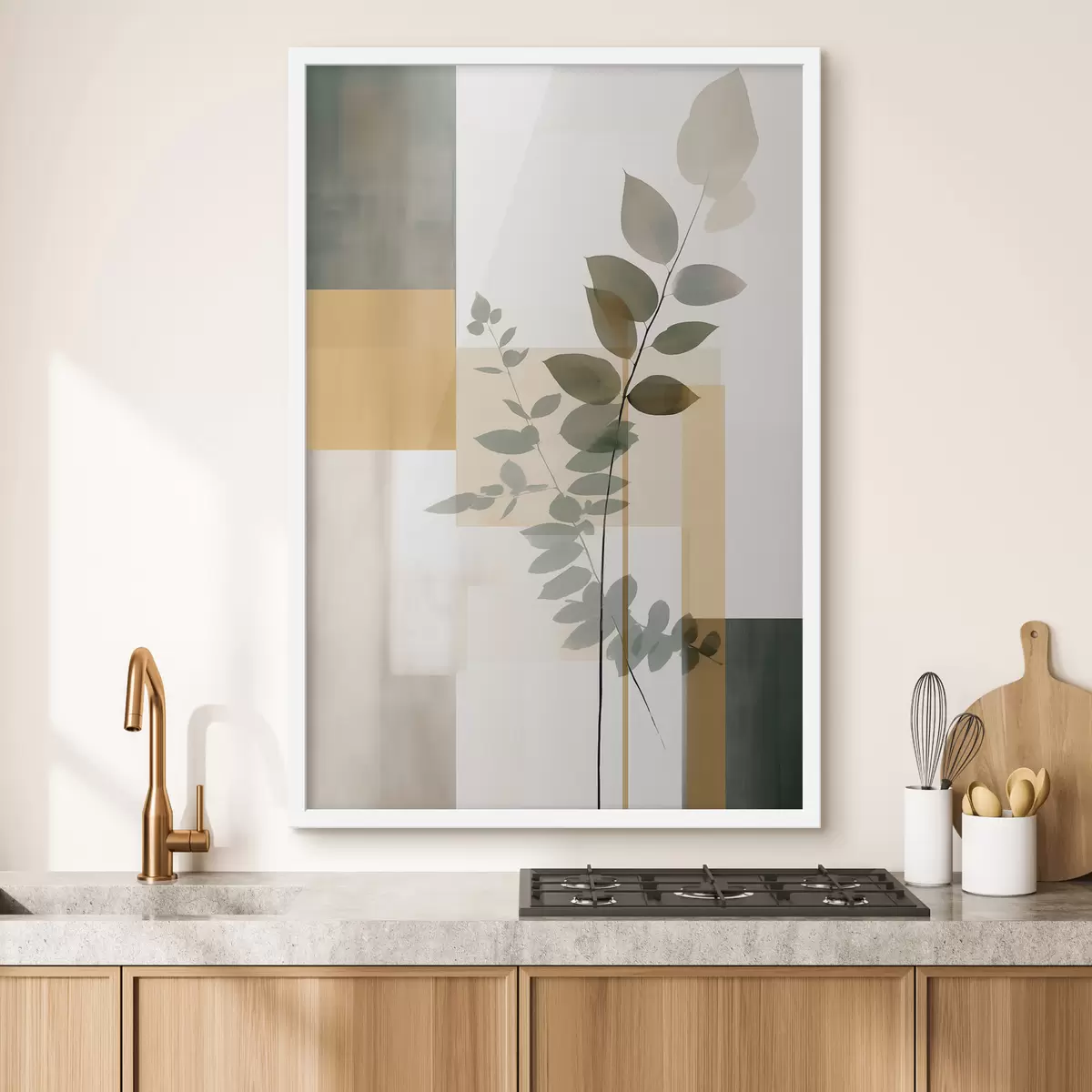 Poster Geometrische abstractie met takken en bladeren N° f48171