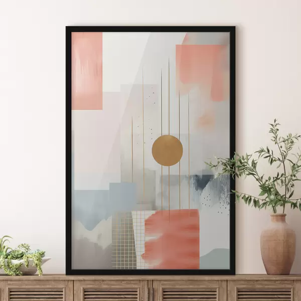 De poster bestaat uit een frame, plexiglas, geprinte afbeelding en spaanplaat achterkant. De poster kan meteen aan de muur worden gehangen dankzij de bevestigingen op de achterkant.