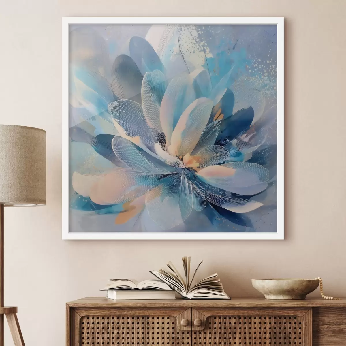 Poster Abstracte bloem in koele tinten in de stijl van een kunstposter f48186