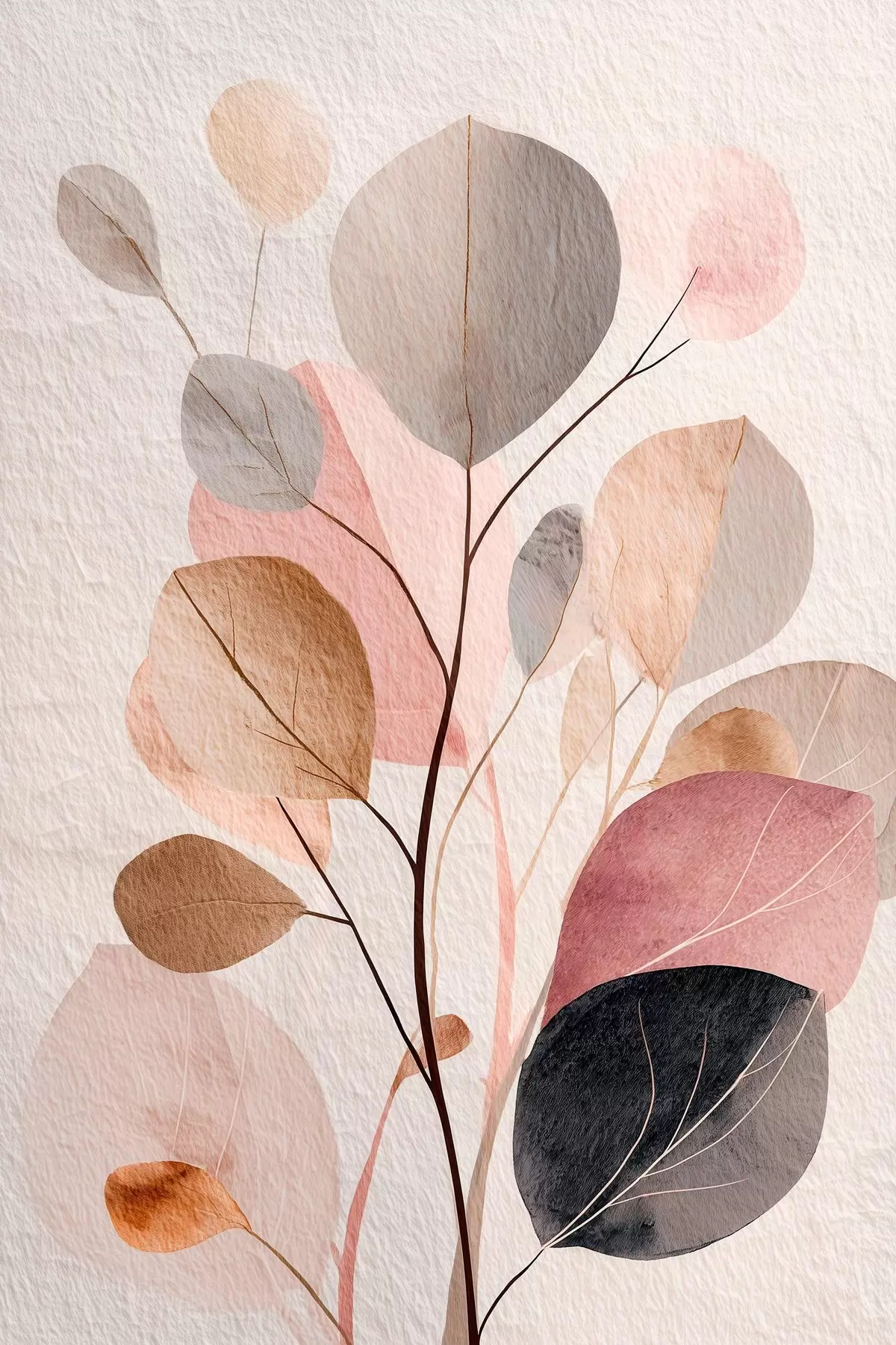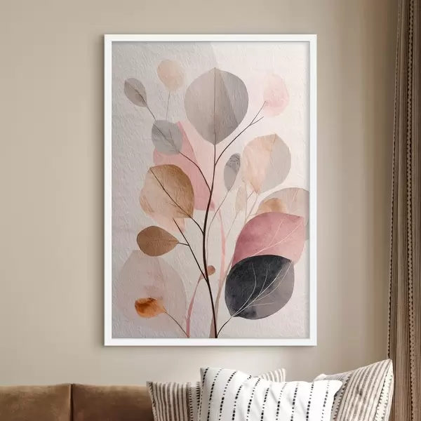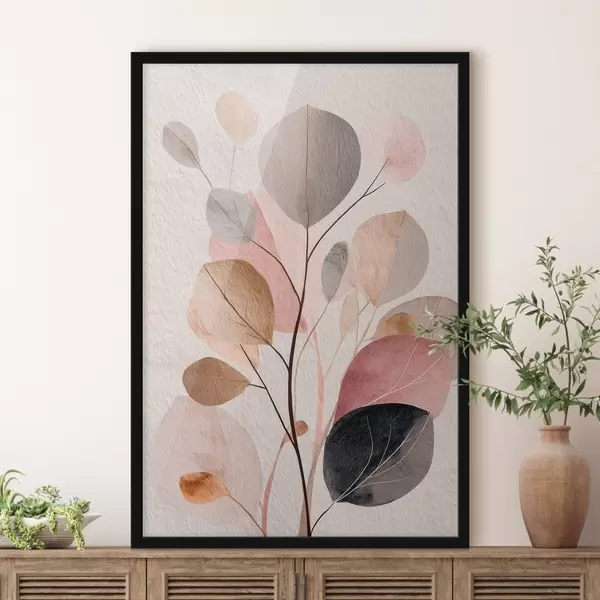 Poster Abstracte tak met ronde bladeren in warme beige- en koraaltinten N° f48187