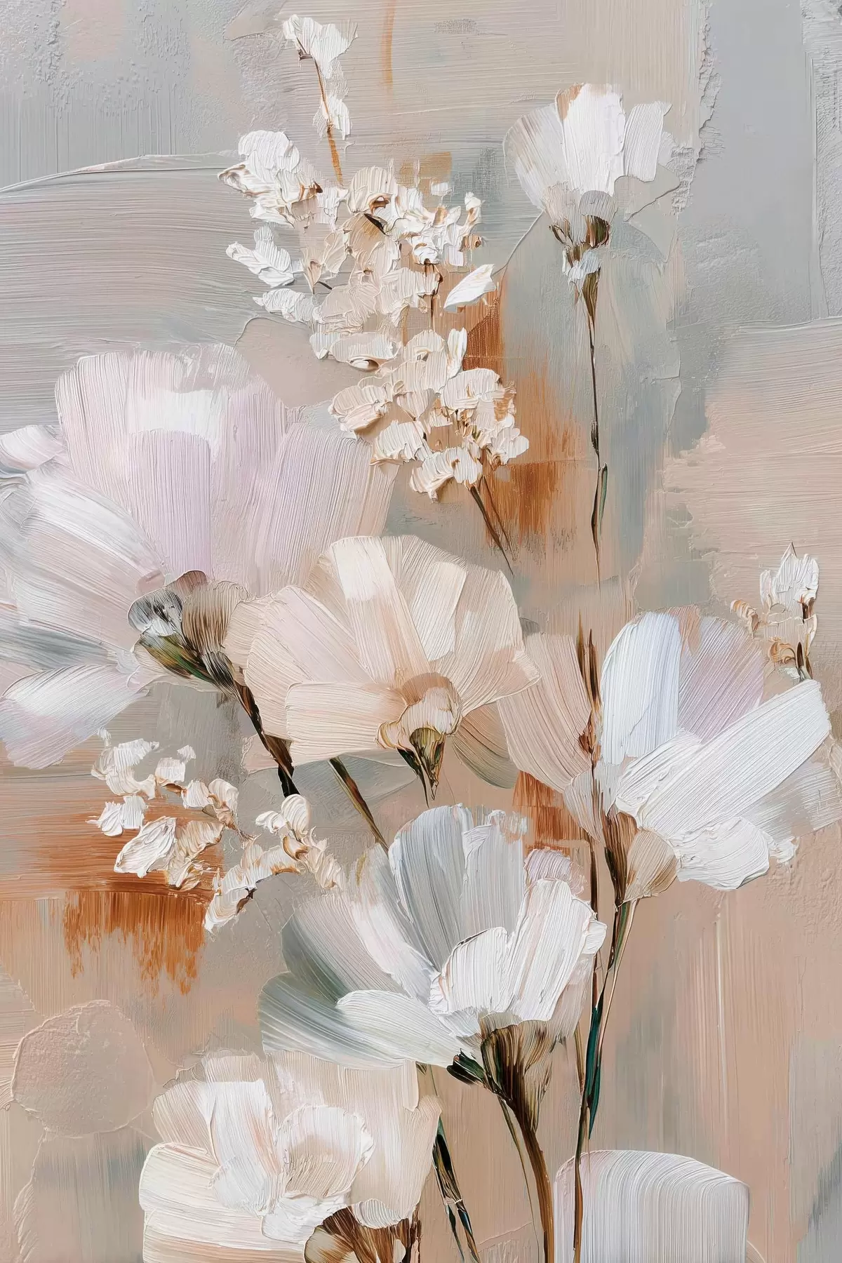 Poster Bloemstuk in pasteltinten in de stijl van een olieverfschilderij N° f48194