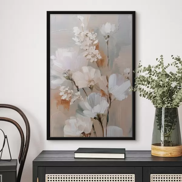 Poster Bloemstuk in pasteltinten in de stijl van een olieverfschilderij f48194