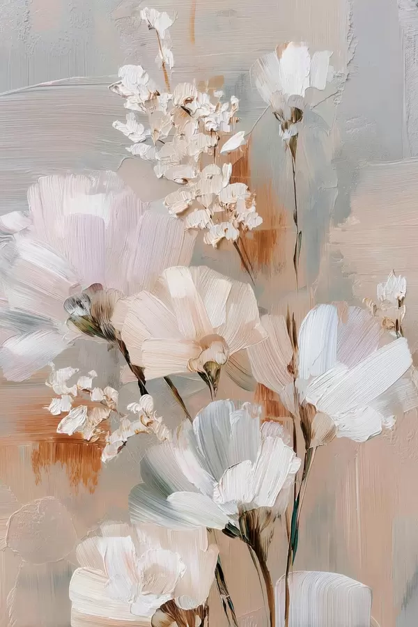 Poster Bloemstuk in pasteltinten in de stijl van een olieverfschilderij f48194