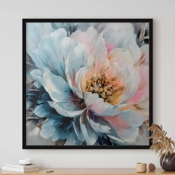 Poster Grote pioenroos met expressieve, gestructureerde penseelstreken in een eigentijdse schilderstijl N° f48197