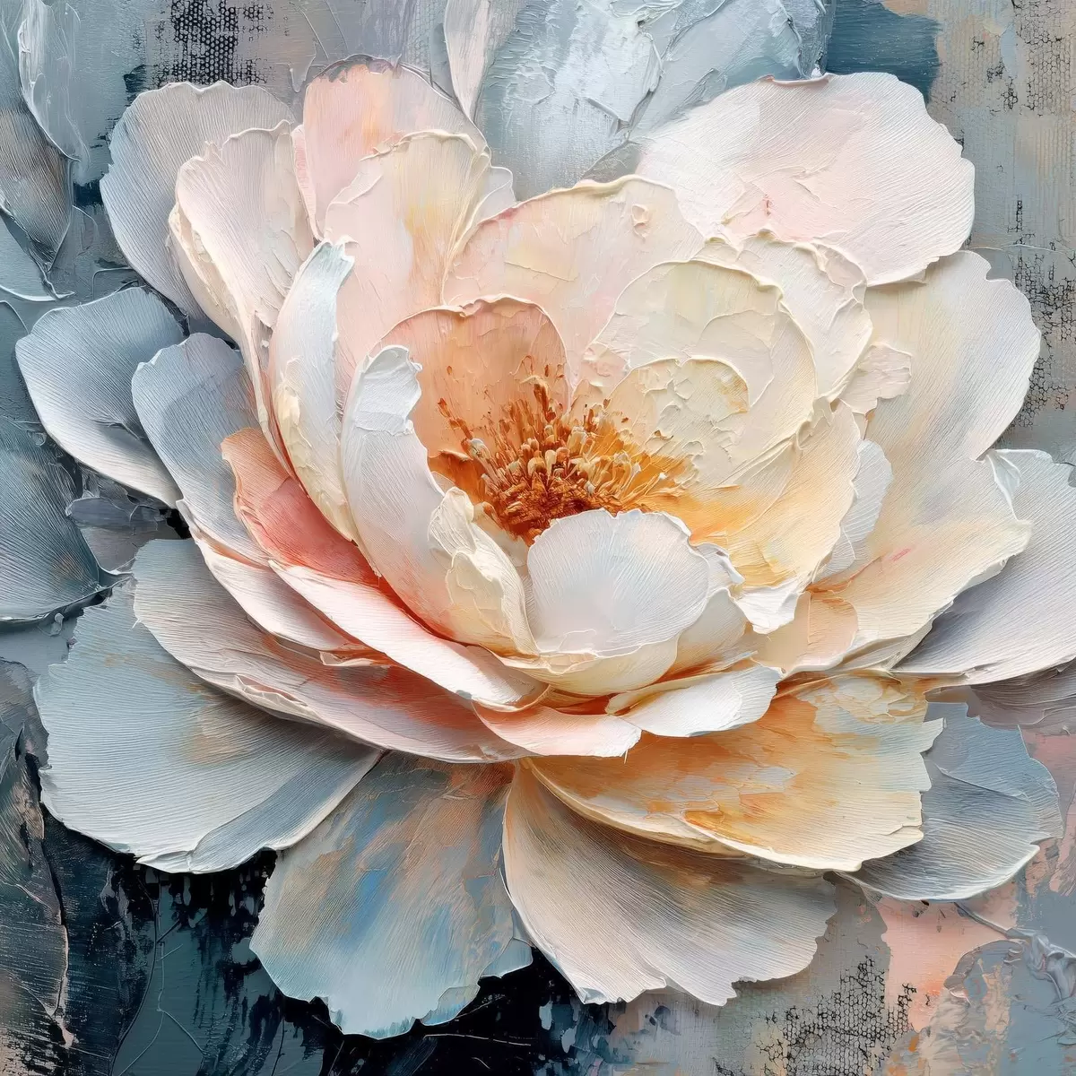 Poster Close-up van een bloem met expressieve, gestructureerde penseelstreken in een eigentijdse schilderstijl N° f48198