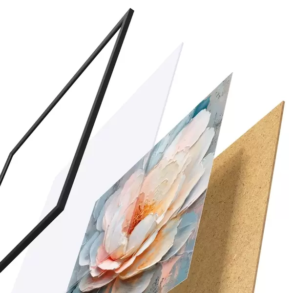 De poster bestaat uit een frame, plexiglas, geprinte afbeelding en spaanplaat achterkant. De poster kan meteen aan de muur worden gehangen dankzij de bevestigingen op de achterkant.