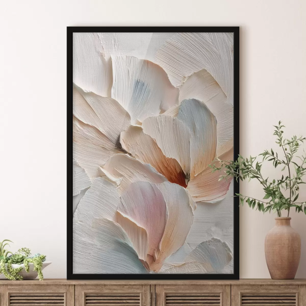 Poster Gestileerde compositie met een effect van dikke penseelstreken op een lichte achtergrond N° f48200