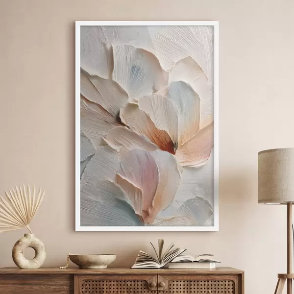 Poster Gestileerde compositie met een effect van dikke penseelstreken op een lichte achtergrond f48200