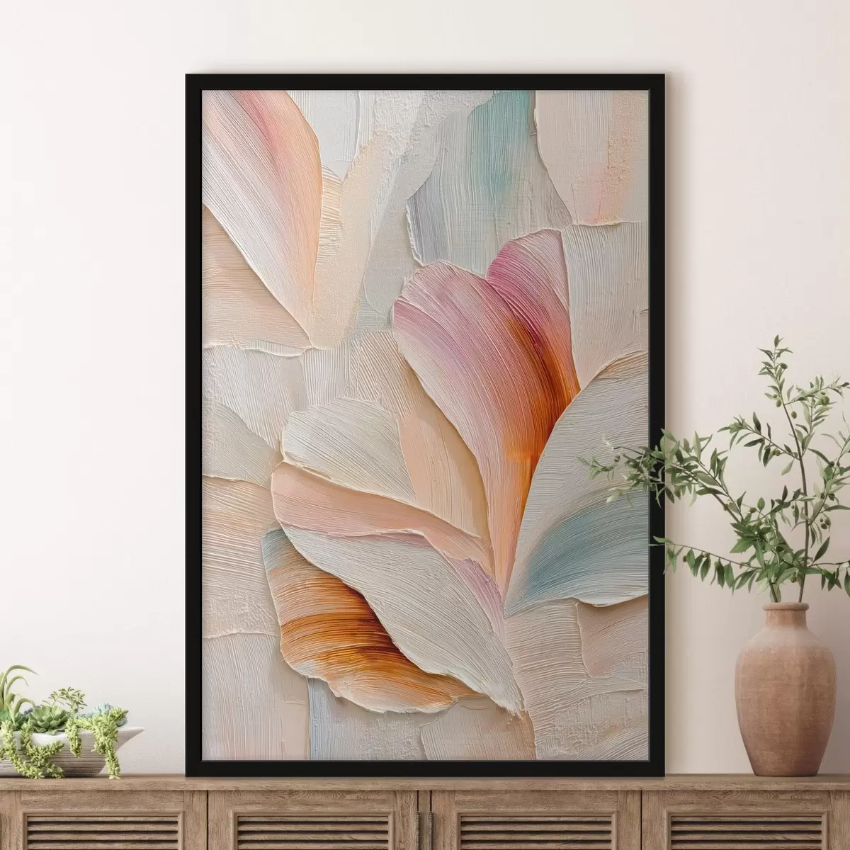 Poster Kunstzinnige illustratie met volumineuze bloemblaadjes in een eigentijdse schilderstijl f48201