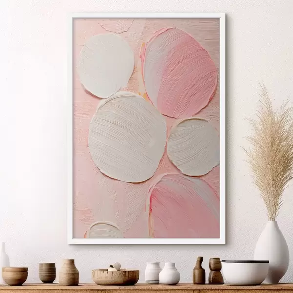 Poster Decoratief paneel met volumineuze cirkelvormige penseelstreken in pastelkleuren f48208