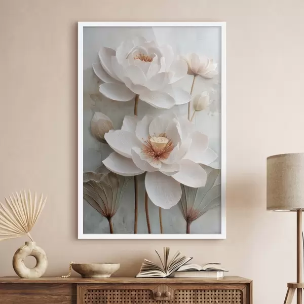 Poster Lotusbloemen in lichte pasteltinten in olieverfstijl N° f48213
