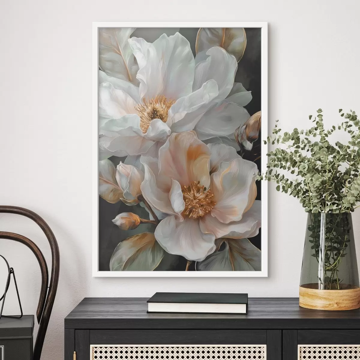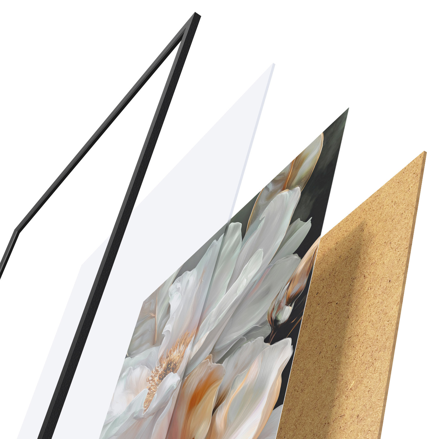 De poster bestaat uit een frame, plexiglas, geprinte afbeelding en spaanplaat achterkant. De poster kan meteen aan de muur worden gehangen dankzij de bevestigingen op de achterkant.