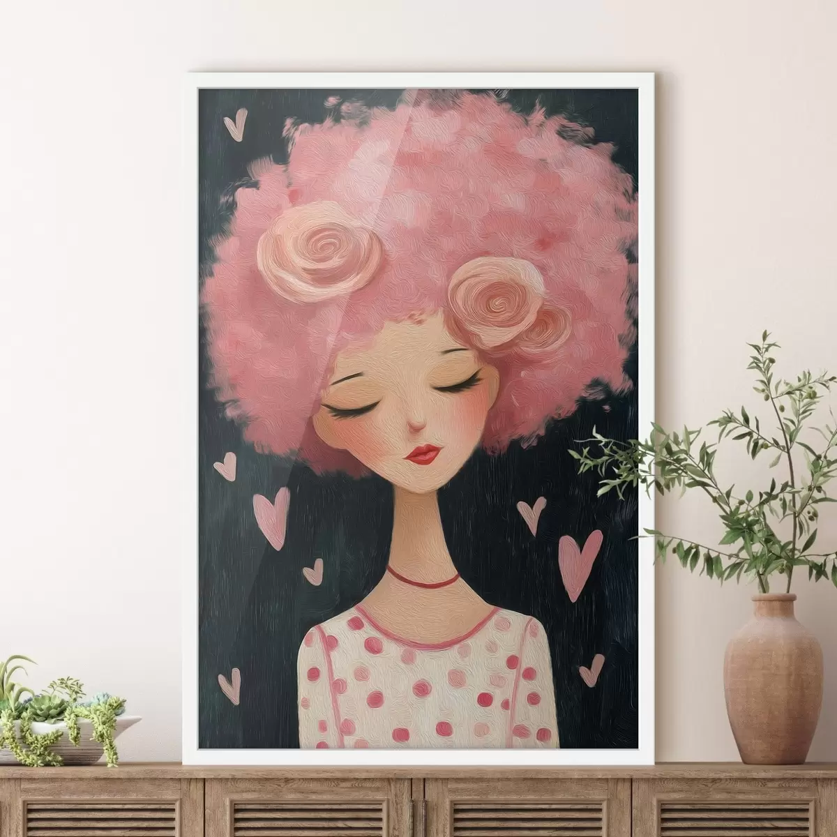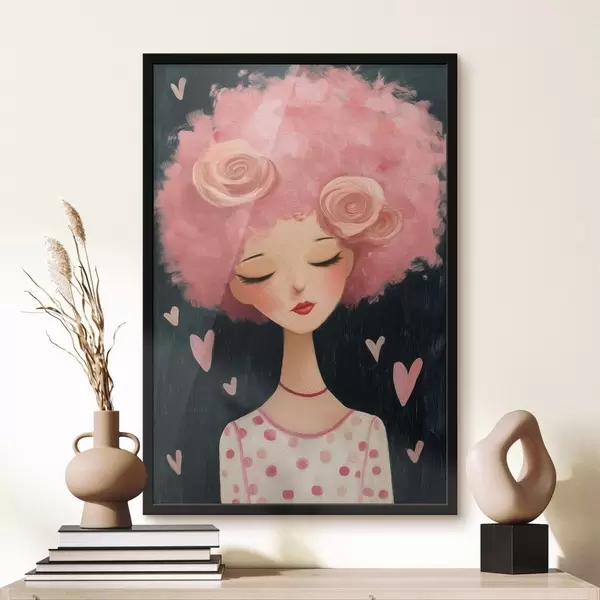 Poster Meisje met roze haar N° f48227