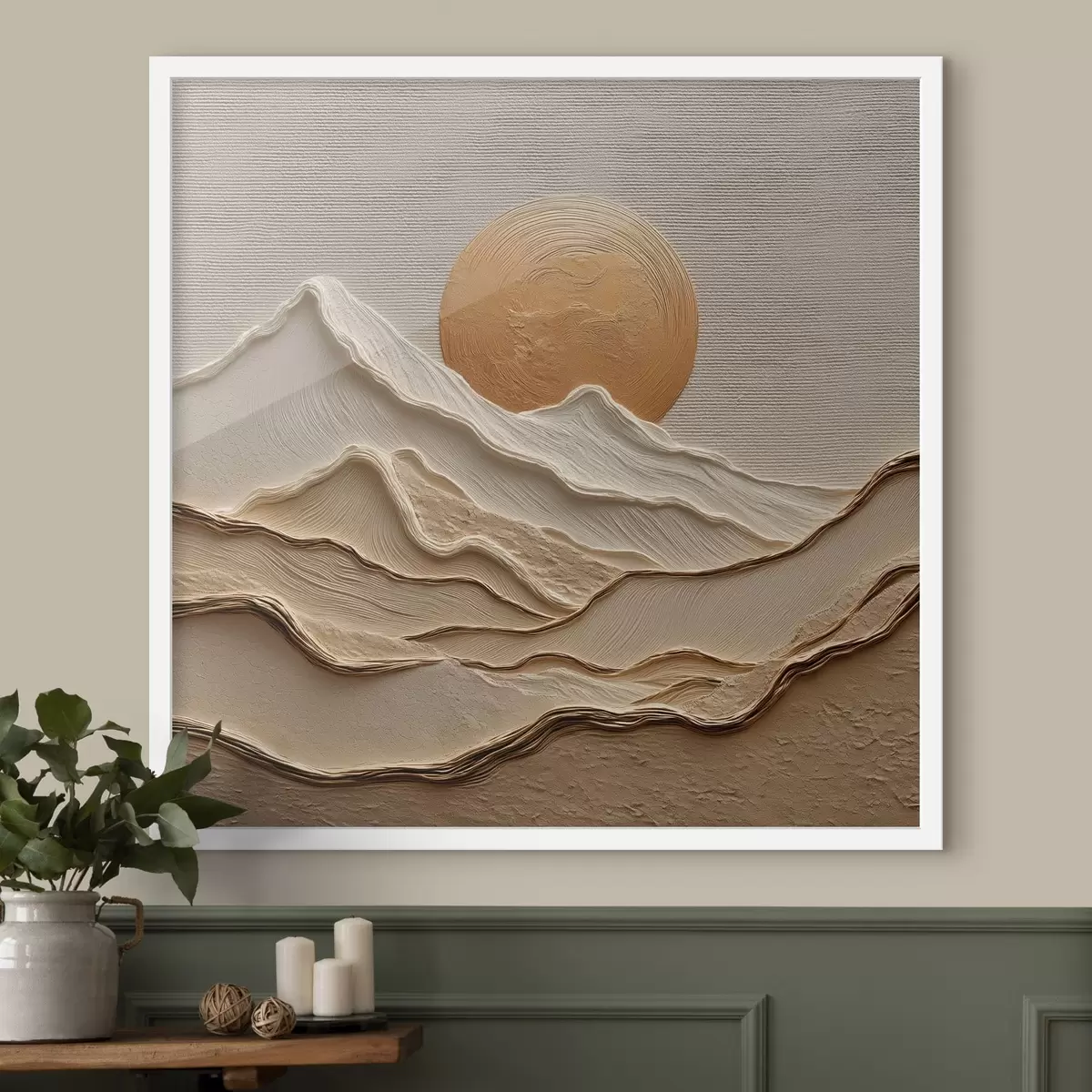 Je kunt het schilderij ophangen aan schroeven. Hiervoor leveren we bevestigingen bij onze foto's, zodat je de foto gemakkelijk kunt ophangen.