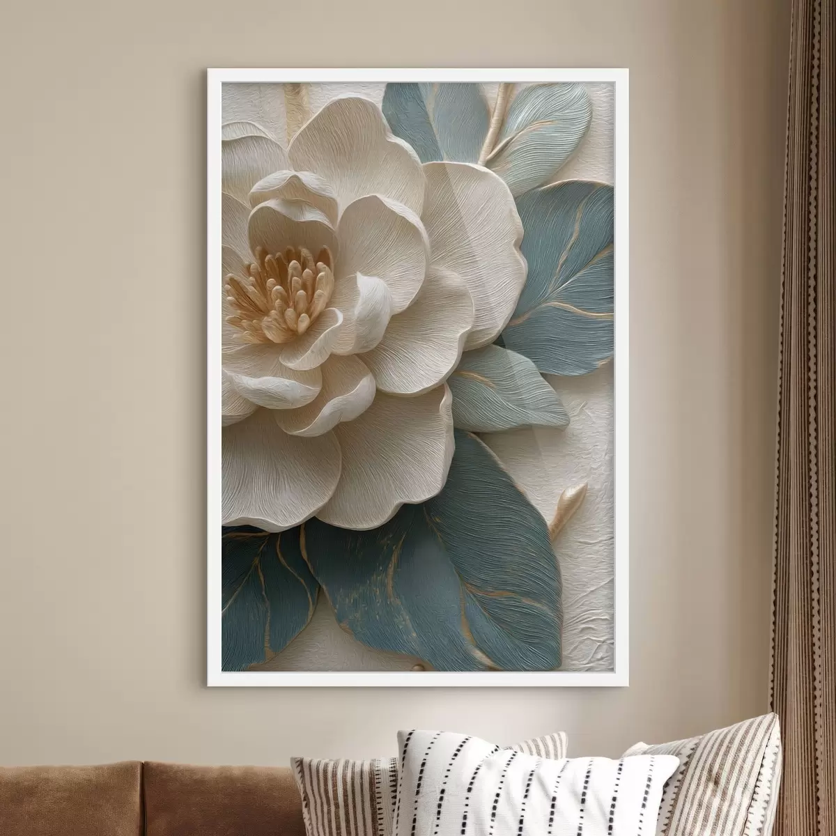 Je kunt het schilderij ophangen aan schroeven. Hiervoor leveren we bevestigingen bij onze foto's, zodat je de foto gemakkelijk kunt ophangen.