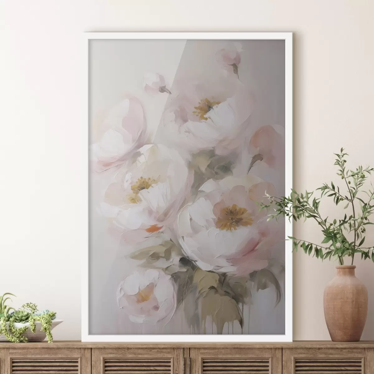 Je kunt het schilderij ophangen aan schroeven. Hiervoor leveren we bevestigingen bij onze foto's, zodat je de foto gemakkelijk kunt ophangen.