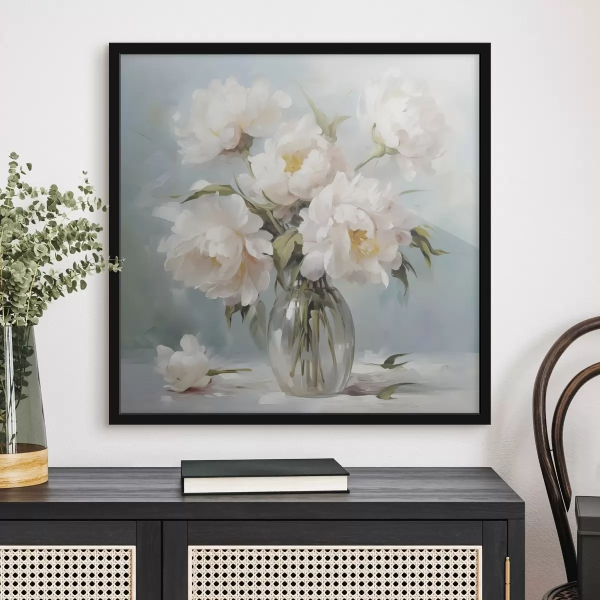Poster Pioenrozen in een vaas imitatieschilderij N° f48265
