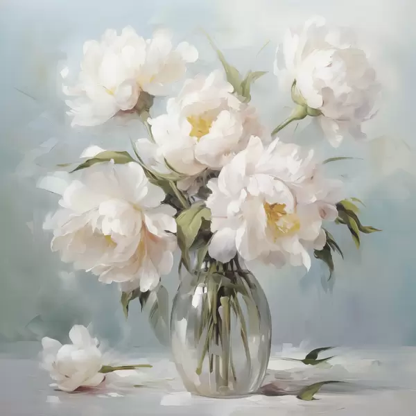 Poster Pioenrozen in een vaas imitatieschilderij N° f48265