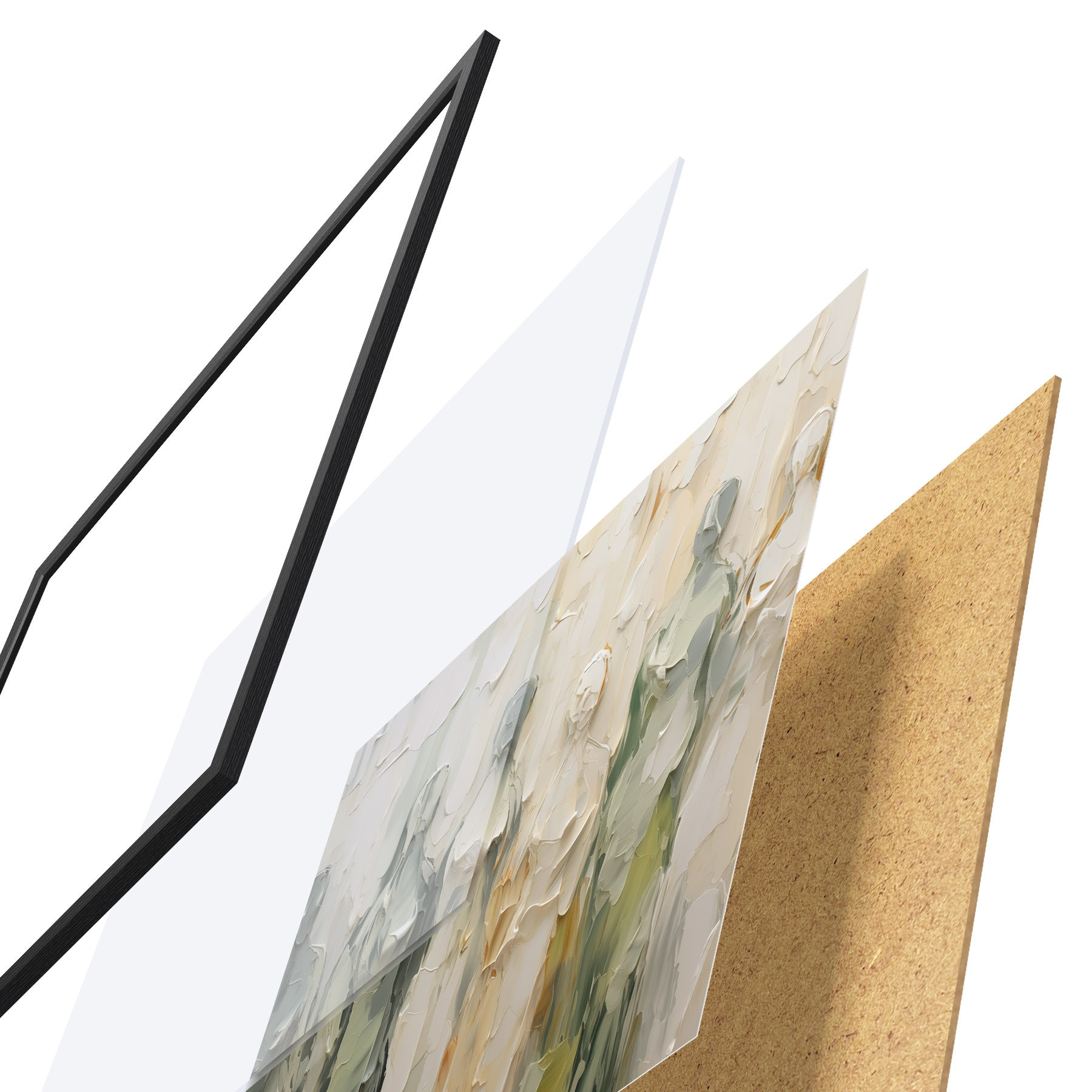 De poster bestaat uit een frame, plexiglas, geprinte afbeelding en spaanplaat achterkant. De poster kan meteen aan de muur worden gehangen dankzij de bevestigingen op de achterkant.