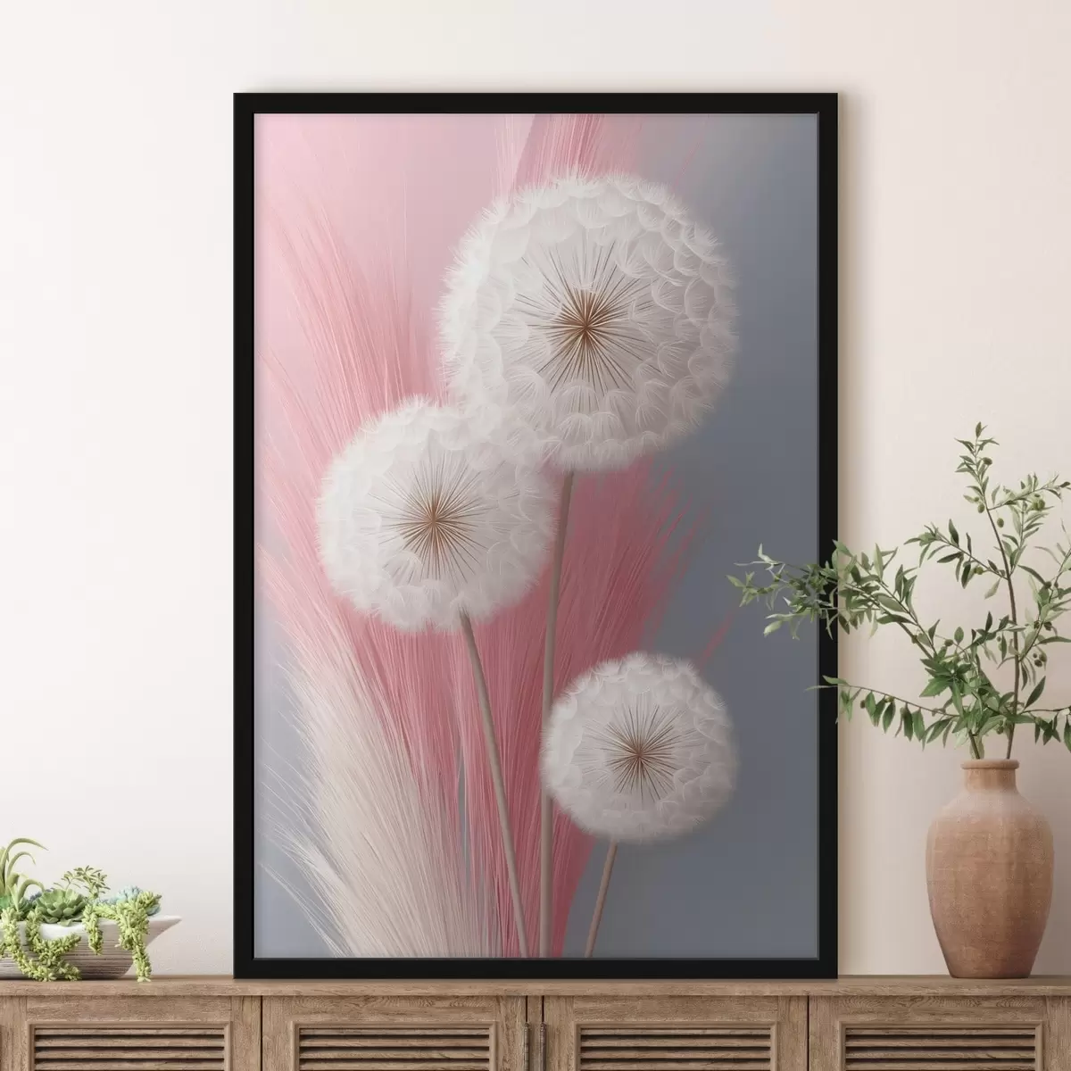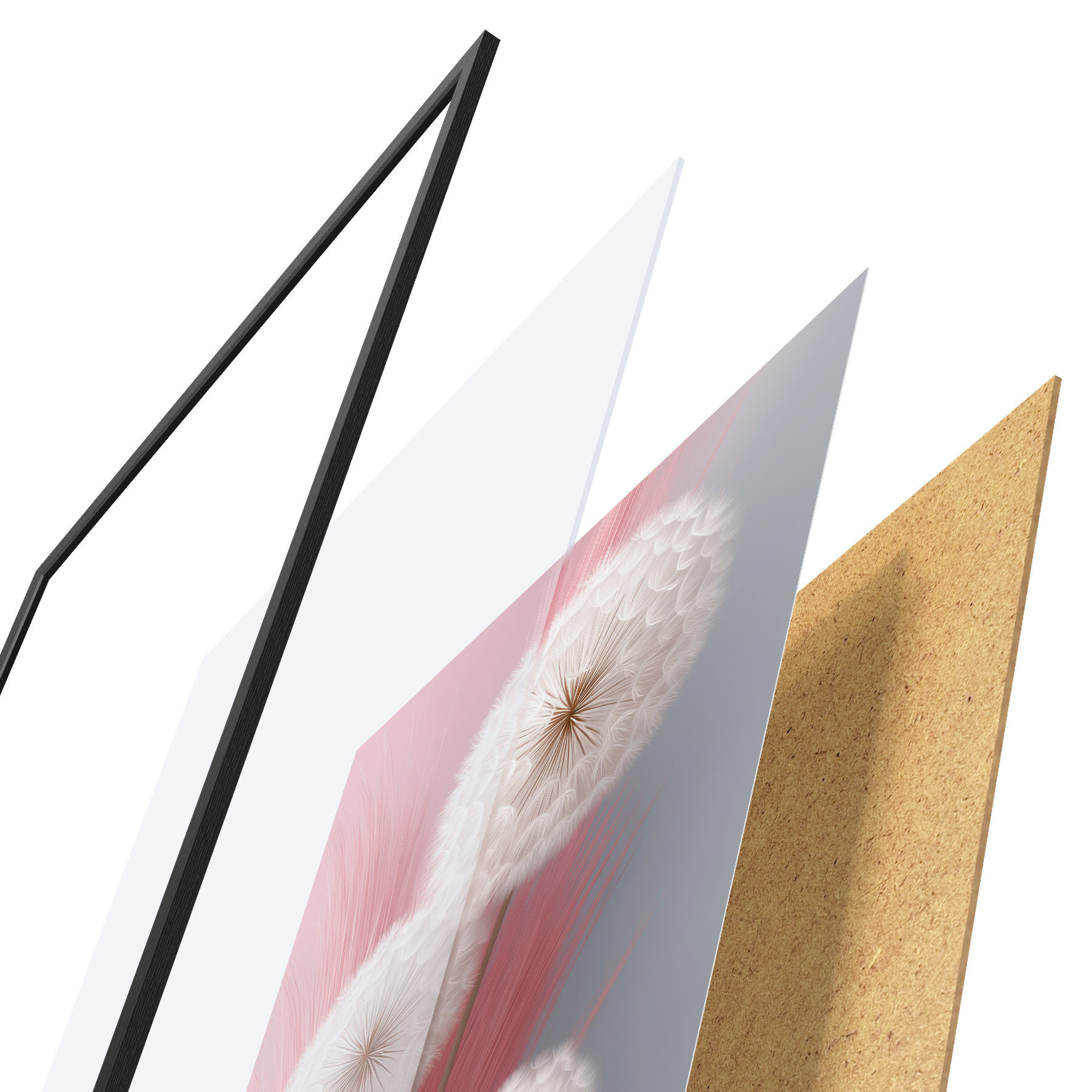 De poster bestaat uit een frame, plexiglas, geprinte afbeelding en spaanplaat achterkant. De poster kan meteen aan de muur worden gehangen dankzij de bevestigingen op de achterkant.