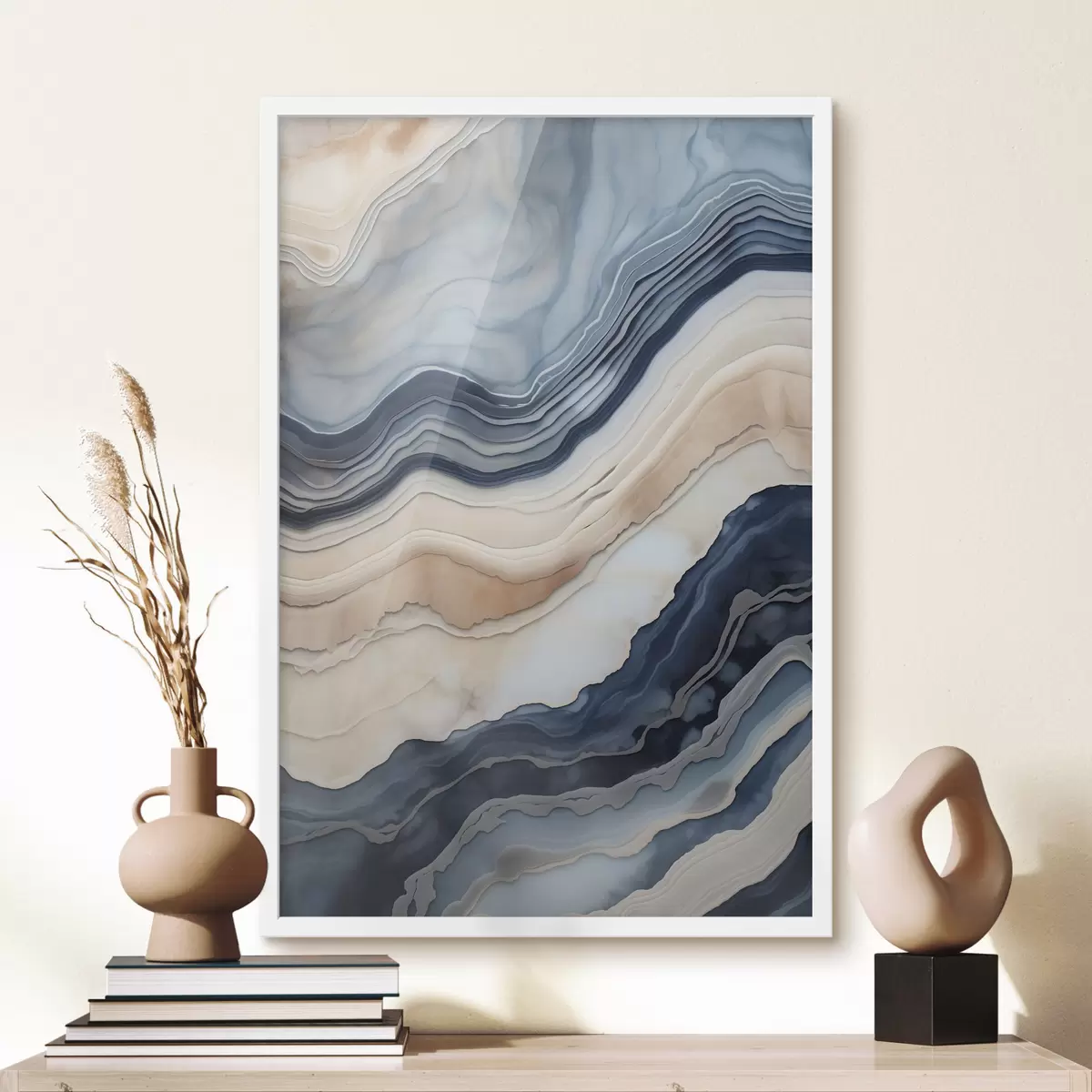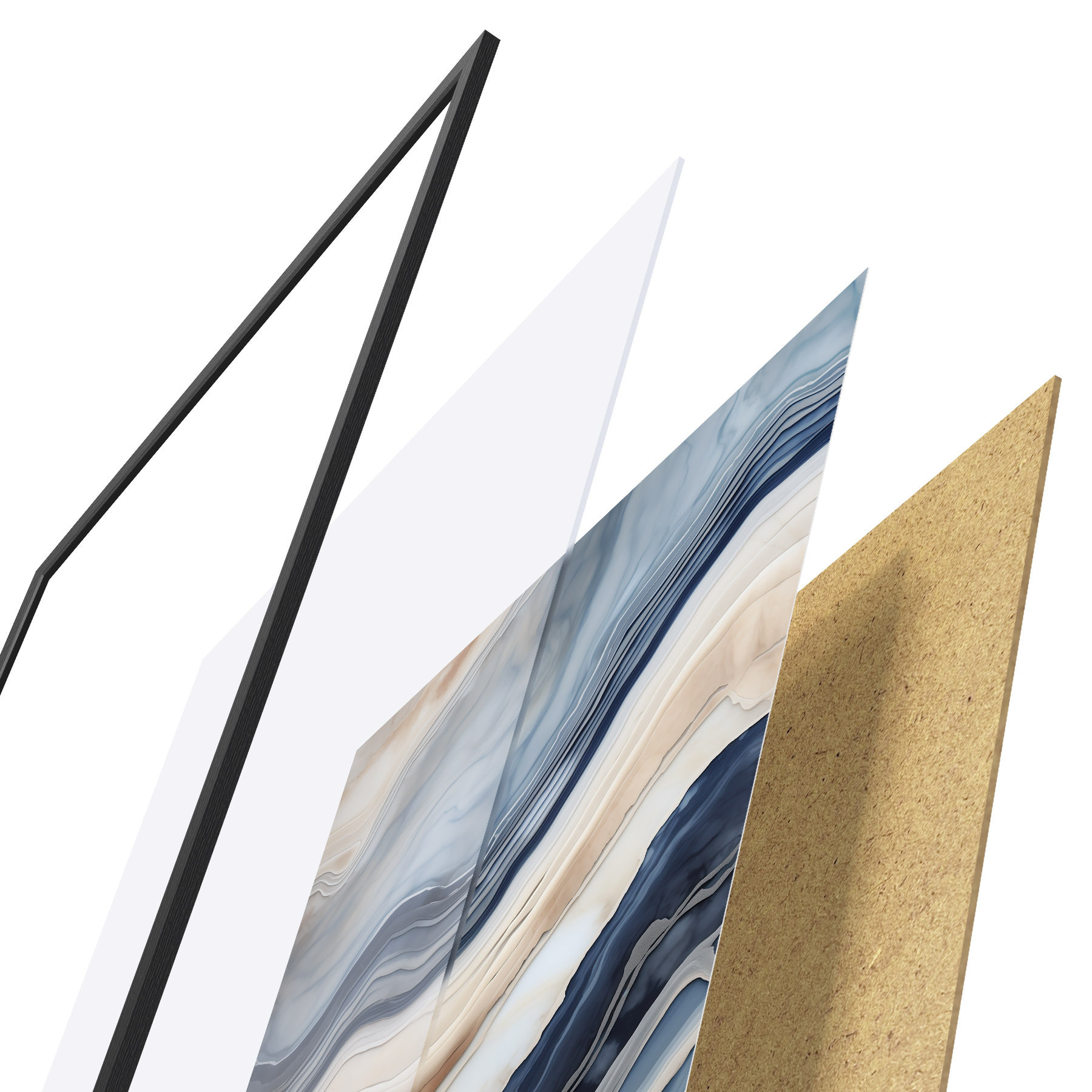 De poster bestaat uit een frame, plexiglas, geprinte afbeelding en spaanplaat achterkant. De poster kan meteen aan de muur worden gehangen dankzij de bevestigingen op de achterkant.